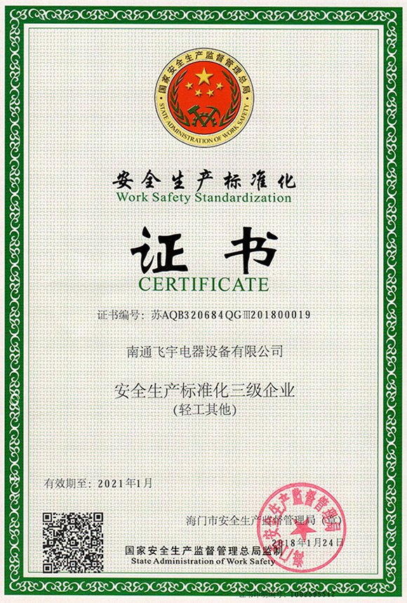 安全生產(chǎn)標(biāo)準(zhǔn)化三級(jí)企業(yè)2018-10-09 15:46:17